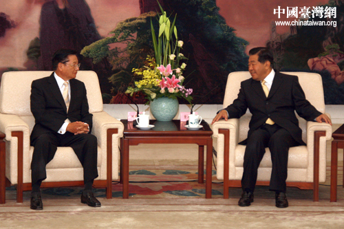 中共中央政治局常委、全國政協主席賈慶林28日下午在人民大會堂會見了臺灣海基會董事長江丙坤率領的海基會新聞交流團一行。(中國臺灣網 田云鵬 攝)