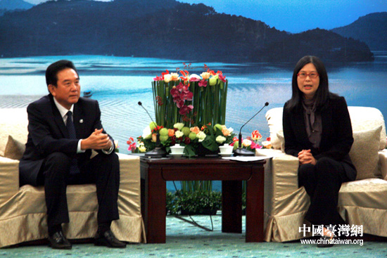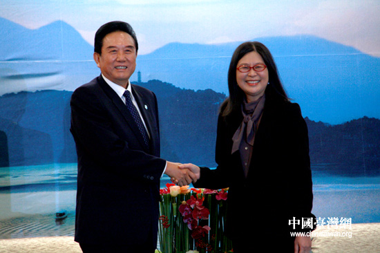 22日下午,參加兩會第四次領導人會談的海協會會長陳云林與臺灣大陸事務主管部門負責人賴幸媛會面。(中國臺灣網 李徽 攝)