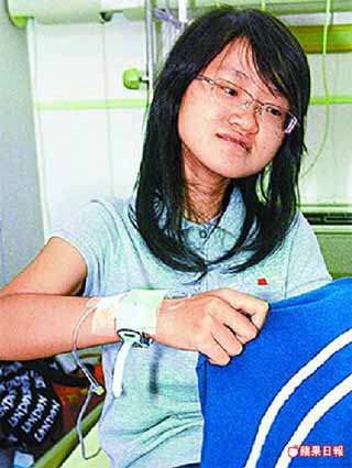 馮姓高二女生接種甲流疫苗后接連進(jìn)出醫(yī)院。來源:臺(tái)灣《蘋果日?qǐng)?bào)》