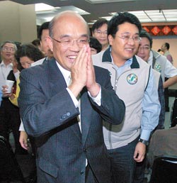蘇貞昌27日到臺北市議會參加同黨市議員的春節聯歡會。(圖片來源:臺灣《中國時報》)