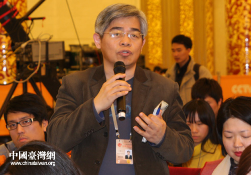 中國臺灣網3月2日北京消息 2日下午,在全國政協十一屆三次會議新聞發布會臨近尾聲的時候,主持人主動提出讓來自臺灣的媒體提一個問題,這個寶貴的機會被臺灣《中國時報》記者王銘義拿到。