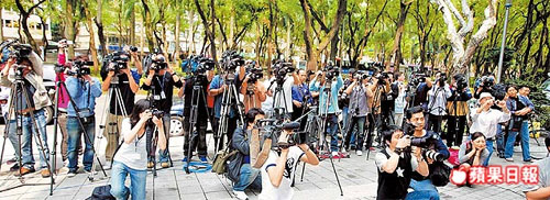 小S昨與丈夫一同現身召開記者會,臺灣媒體大陣仗采訪。 來源:臺灣《蘋果日報》
