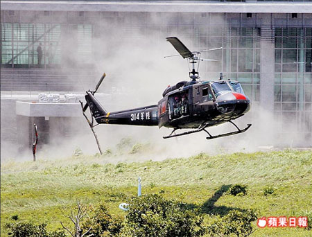 因塔臺疏失,臺陸軍UH-1H通用直升機險與臺海軍S-2T反潛機相撞。來源:臺灣《蘋果日報》