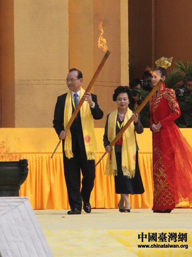 中國國民黨副主席林豐正與夫人參加拜祖大典,并上頭香。圖片來源:河南省臺辦