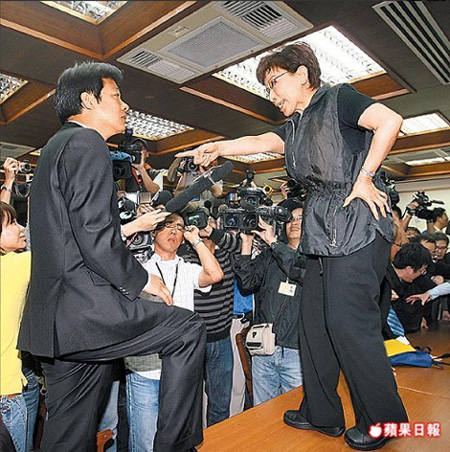 國(guó)民黨籍民意代表洪秀柱(右)與民進(jìn)黨籍民代賴(lài)清德(左)互嗆。