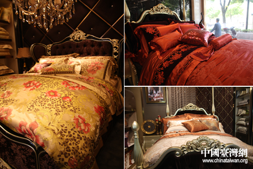 絲綢之路集團展出的部分精美家紡類絲綢產品(中國臺灣網 李典典攝)