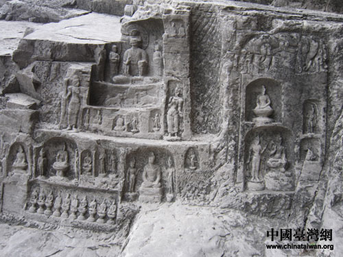 一小塊石壁上雕滿了高不盈寸的佛像,不由讓人驚嘆古代工匠精湛的技藝。(中國(guó)臺(tái)灣網(wǎng) 朱毅 攝)