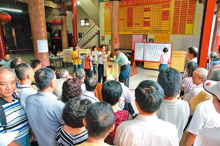 基層選舉競爭激烈,彰化縣員林鎮玉天宮投開票所下午開票時,現場擠滿關心選情的民眾。 來源:臺灣《中國時報》