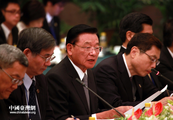 6月29日上午,海協(xié)會(huì)與臺(tái)灣海基會(huì)在重慶申基索菲特大酒店舉行第五次領(lǐng)導(dǎo)人會(huì)談。圖為海基會(huì)董事長(zhǎng)江丙坤致辭。(中國(guó)臺(tái)灣網(wǎng) 鐘寶華 攝)