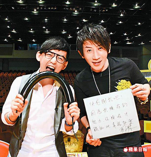 劉謙(右)接受黃子佼《佼個(gè)朋友吧》節(jié)目專訪。圖片來(lái)源:臺(tái)灣《蘋果日?qǐng)?bào)》