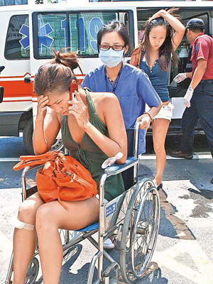 休旅車駕駛馮凌儷送醫時懊惱地打電話,她的同事李香凝(后)雖也受傷,但仍可步行走進醫院。來源:臺灣《中國時報》