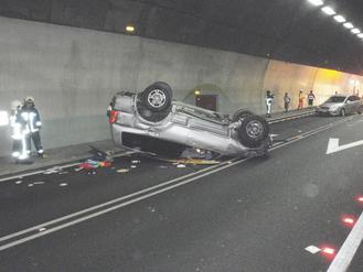 一女駕駛未吃早餐恍惚翻車 致臺隧道堵塞萬人滯留