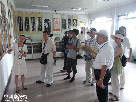 來(lái)自臺(tái)灣的牛海川教授在參觀王城碑拓展 (中國(guó)臺(tái)灣網(wǎng) 蕪?fù)?攝)
