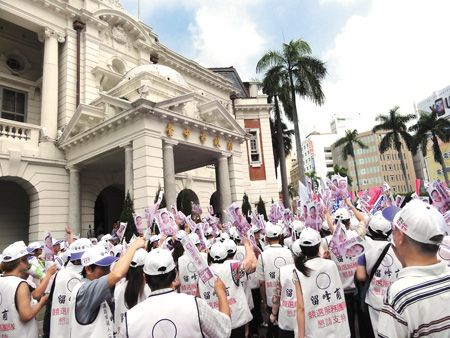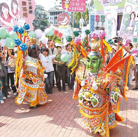 參選人還請來電音三太子助陣。來源:臺灣《中國時報》