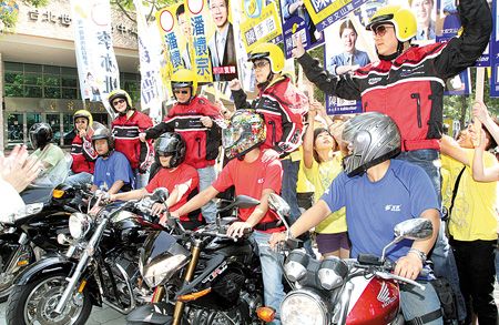 新黨市議員參選人集體乘坐重型摩托車抵達現場造勢。來源:臺灣《中國時報》