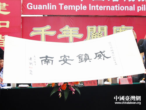 中國國民黨榮譽主席連戰賀詞:威鎮安南。圖片來源:洛陽市臺辦