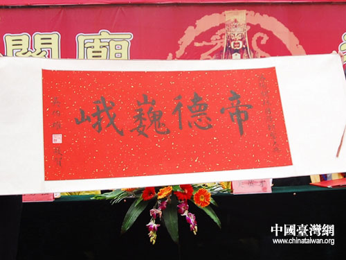 中國國民黨榮譽主席吳伯雄賀詞:帝德巍峨。圖片來源:洛陽市臺辦