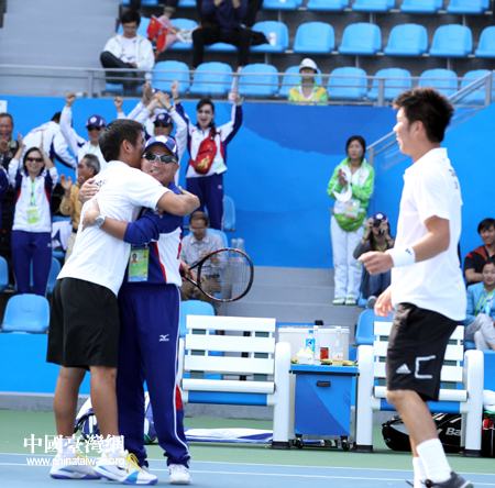 中國臺灣網11月16日廣州消息 網球男子團體決出冠軍,頭號種子中華臺北力敵3號種子烏茲別克斯坦,在決定勝負的第三場雙打中,以2:0完勝。這也是中華臺北隊在亞運會網球男子團體賽上第一次打進決賽并贏得金牌。