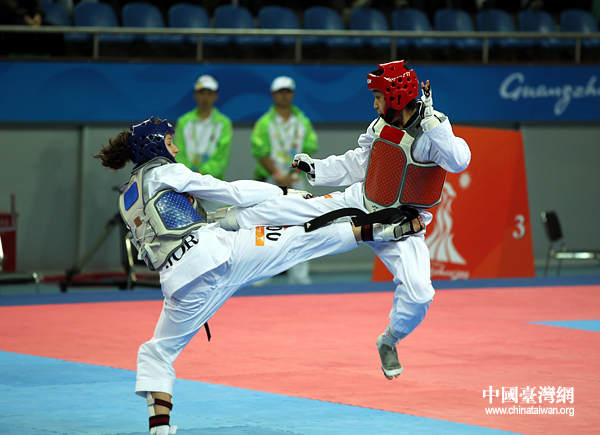 中國臺灣網(wǎng)11月17日廣州消息 在剛剛結束的廣州亞運會跆拳道女子46公斤決賽中,中華臺北隊17歲的小將黃顯詠以6:3戰(zhàn)勝約旦對手達娜·圖蘭,為中華臺北隊再添一金。