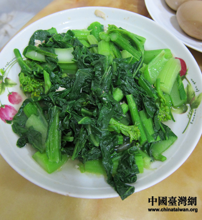 清燙芥菜。此菜久煮長青,又稱長年菜,寓意延年益壽、長保青春。