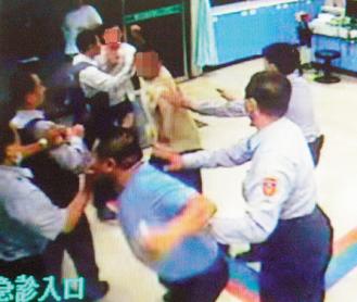 彰化一家醫(yī)院急診室,就醫(yī)民眾與友人在警察面前互毆,波及在場醫(yī)護人員。圖片來源:臺灣《聯(lián)合晚報》