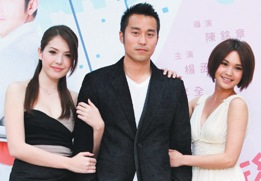 許瑋寧(左起)、張孝全、楊丞琳出席臺灣偶像劇“醉后決定愛上你”試片。圖片來源:臺灣《聯合報》