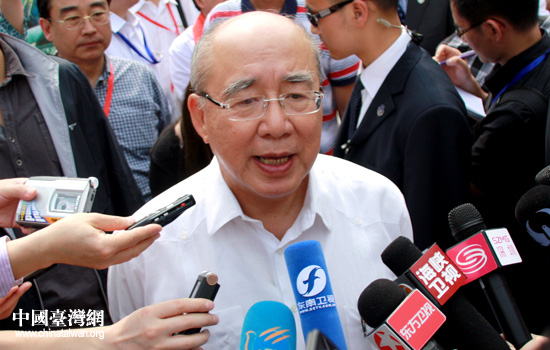 圖為吳伯雄在映秀鎮(zhèn)接受媒體采訪。(中國(guó)臺(tái)灣網(wǎng) 高斯斯 攝)