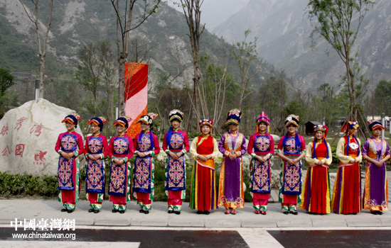 圖為身著民族盛裝的民眾歡迎吳伯雄一行。(中國(guó)臺(tái)灣網(wǎng) 高斯斯 攝)