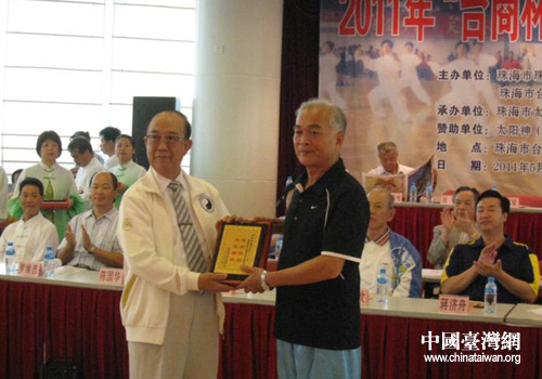 中國臺灣網5月24日廣州消息 日前,廣東省珠海市珠臺經濟文化交流協會、珠海市體育總會、珠海市臺商投資企業協會主辦的2011“臺商杯”珠臺太極拳交流大會在珠海隆重開幕。廣東省海峽兩岸交流促進會駐會副會長白瑞秋、促進會秘書長李淑珊、廣東省市臺辦相關負責人、主辦單位領導、珠臺港澳太極拳界人士等300人出席了開幕式。