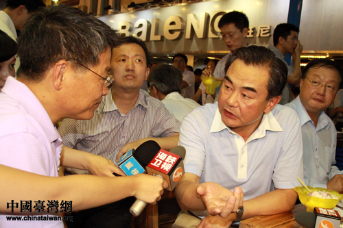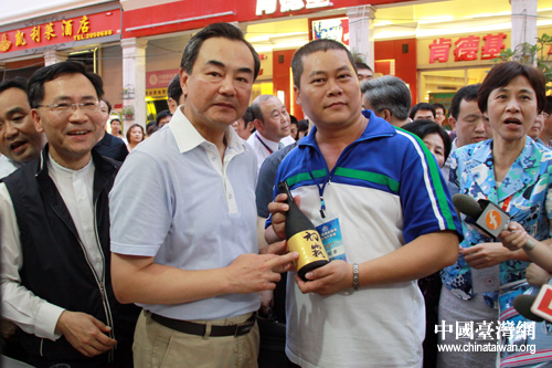 6月12日下午,正在廈門出席第三屆海峽論壇的國務院臺辦主任王毅參觀了在廈門市中山路舉行的臺灣特色廟會,并與臺灣業(yè)者合影留念。(中國臺灣網 王偉 攝)
