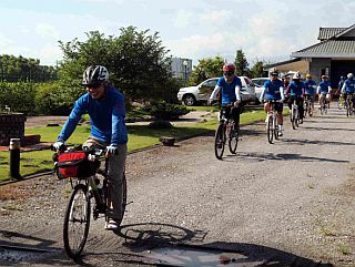 臺灣宜蘭地區20多名退休及在職校長,今(12)日以騎乘自行車的方式,體驗臺灣世界展望會的“饑餓30”活動。圖片來源:臺灣“中廣新聞網”