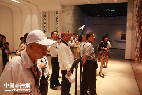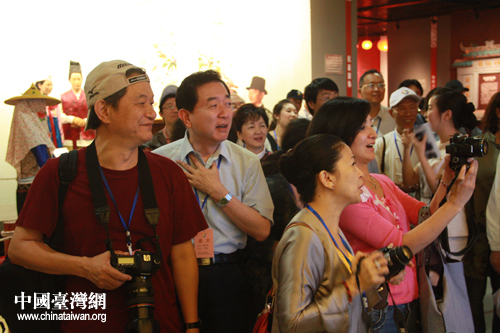 臺嘉賓團團長前海基會副董事長焦仁和(左二)在成都非遺博覽園參觀(中國臺灣網(wǎng) 趙輝 攝)