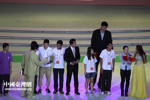 中國臺灣網(wǎng)7月13日北京消息 7月12日下午,以“兩岸同心,我們同行”為主題的兩岸青年大型交流主題聯(lián)歡活動,在北京人民大會堂盛大舉行。成龍、姚明、王楠、林丹等深受兩岸青年喜愛的演藝、體壇明星云集,為來自海峽兩岸的8名同學慶祝生日,送上各自準備的禮物和簽名,以及對兩岸青少年未來的寄語和祝福。