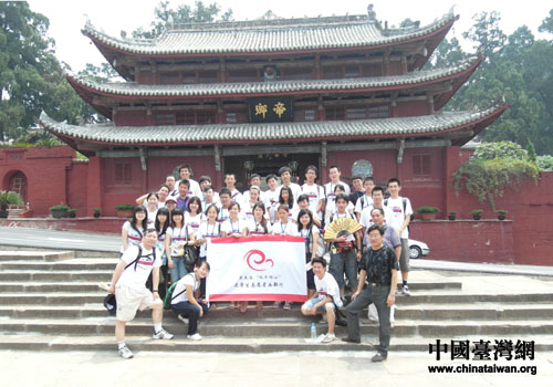 參訪團一行在七曲山大廟前合影留戀(圖片來源:綿陽市臺辦)