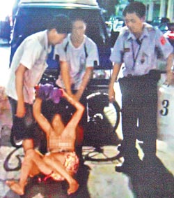 據臺媒了解,22日晚上熱鬧的林邊夜市,57歲的婦人方賢懿,正要推走一臺腳踏車時,埋伏警察一涌而上將她逮捕。說時遲那時快,老嫗突然以迅雷不及掩耳之勢,把T恤脫下,露出沒穿胸罩的雙乳。現場所有人見她此舉都驚呆了,這時婦人還想“加碼”,準備要脫下褲子時,被回過神的警察緊緊扣住雙手制止,她不斷掙扎反抗,還高喊“警察強奸人喔!”眼見婦人行為愈來愈放肆,警察連忙搶下她的T恤要幫她穿上,但老嫗“寧死不從”,警方也無可奈何。
