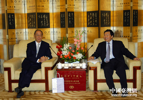 中國臺灣網10月8日西安消息 10月7日,陜西省委常委、常務副省長婁勤儉在西安會見了臺灣太平洋文化基金會董事長錢復一行。