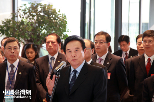 21日下午,海協會會長陳云林在天津賓館與江丙坤率領的海基會協商代表團一行親切話別,圖為江丙坤臨別感言。(中國臺灣網 楊麗 攝)