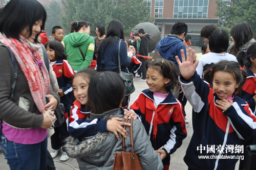 圖為玉樹孩子與北大學(xué)子們依依送別。 (宋慶齡基金會(huì)志愿者 許慶慶 攝)