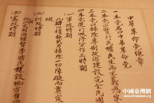 孫中山手書(shū)中華革命黨總章。(中國(guó)臺(tái)灣網(wǎng) 宿靜 攝)