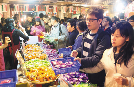 選后年前,激情過(guò)后,臺(tái)北市迪化街涌入搶辦年貨的人潮,即使入夜后依舊熱鬧滾滾。(圖片來(lái)自臺(tái)灣媒體)