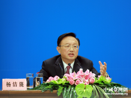 十一屆全國人大五次會議今天上午10時在人民大會堂三樓金色大廳舉行記者會。外交部部長楊潔篪就“我國的對外政策和對外關系”問題答記者問。(中國臺灣網 王偉 攝)