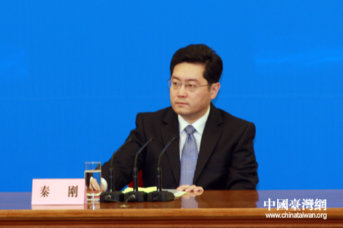 十一屆全國人大五次會議今天上午10時在人民大會堂三樓金色大廳舉行記者會。圖為外交部新聞司司長秦剛參加記者會。(中國臺灣網 王偉 攝)
