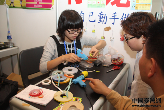展商指導觀展市民制作紙公仔,免費體驗,做好帶走。(中國臺灣網 王思羽 攝)