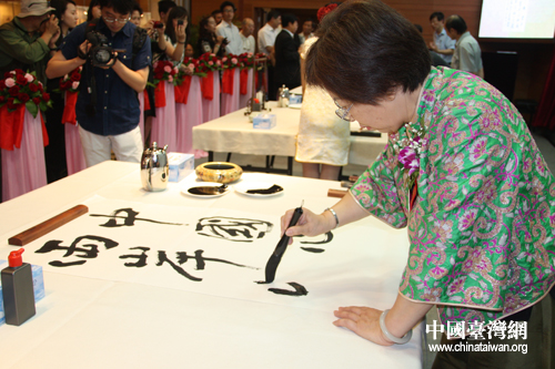 臺灣書法家現場潑墨,寫下“中國心、兩岸情”(中國臺灣網 陳寧 攝)