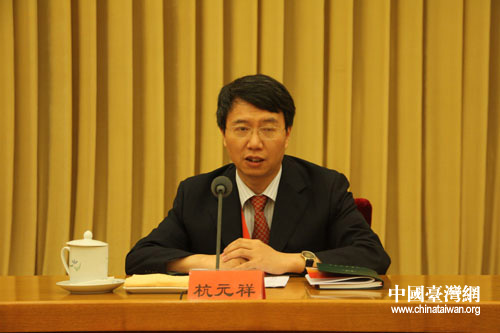 中國和平統一促進會執行副秘書長杭元祥主持會議(中國臺灣網 王君飛 攝)