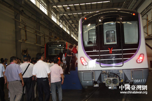 中國(guó)和平統(tǒng)一促進(jìn)會(huì)赴湘考察團(tuán)走進(jìn)南車株洲電力機(jī)車有限公司的生產(chǎn)車間。圖為南車株洲電力機(jī)車有限公司生產(chǎn)的地鐵。(中國(guó)臺(tái)灣網(wǎng) 王君飛 攝)