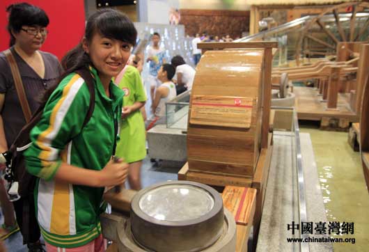 來自阿里山的楊安琪同學被科技館里的“石磨”所吸引。(中國臺灣網 黃艷艷 攝)