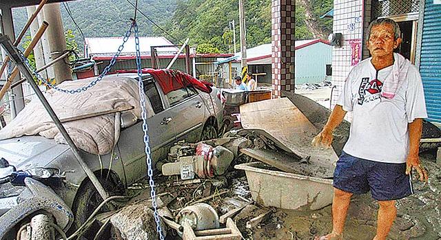 和中部落災(zāi)民林漢吉回到土石掩埋的家園,慶幸和家人跑得快,逃過一劫。(圖片來自臺媒)