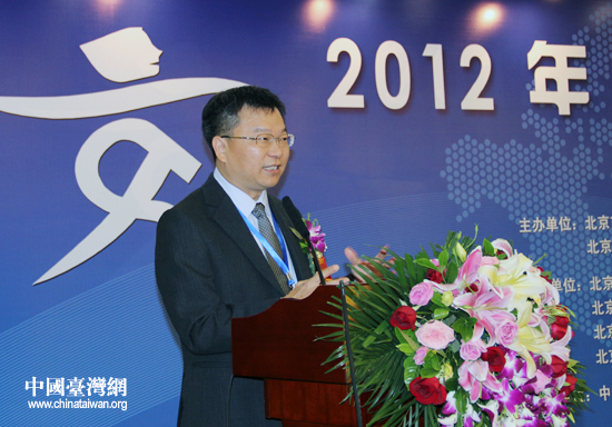 臺灣宜蘭大學(xué)校長趙涵捷出席開幕式,并代表前來參會的臺灣測繪專業(yè)代表團(tuán)發(fā)表致辭。(中國臺灣網(wǎng) 王思羽 攝)