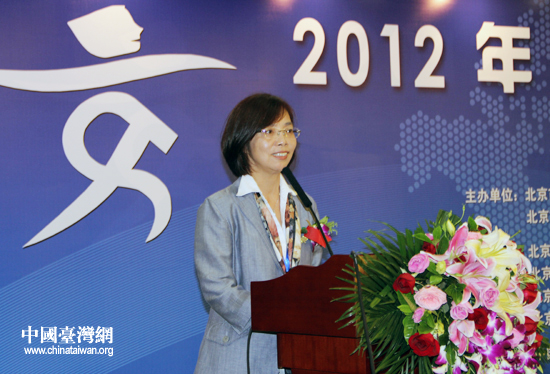 臺灣景觀學(xué)會理事長李素馨出席開幕式,并代表前來參會的臺灣園林專業(yè)代表團(tuán)發(fā)表致辭。(中國臺灣網(wǎng) 王思羽 攝)